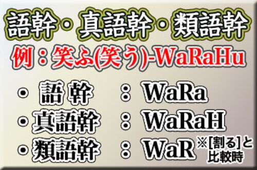 こんにちワ 前書いた記事で[学校で習う語幹は”言葉の共通性を見いだしにくいもの”で 考えるべきは真語幹の部分]という記事を書きました。 今回は真語幹よりもさらに言葉の仲間を集めた類語幹について説明していきます。 【類語幹】 私が定義する言葉です。 […